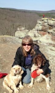 I bought the dog tent (Dog Haus from ABO Gear from Amazon ). I added a light pad http://www.wag.com/dog/p/chuck-it-travel-bed-101798 to keep the dogs more comfortable during the cool evenings and light drizzles when we go camping. Chipper and Buffy claimed the tent during its first use at Pharoh Campground ) near the Garden of the Gods (http://www.theshawneenationalforest.com/home/shawnee-national-forest-trails/garden-of-the-gods) in the Shawnee National Forest in Southern Illinois. Rarely did all three go inside at the same time, since Cassie and Buffy have dominance issues.